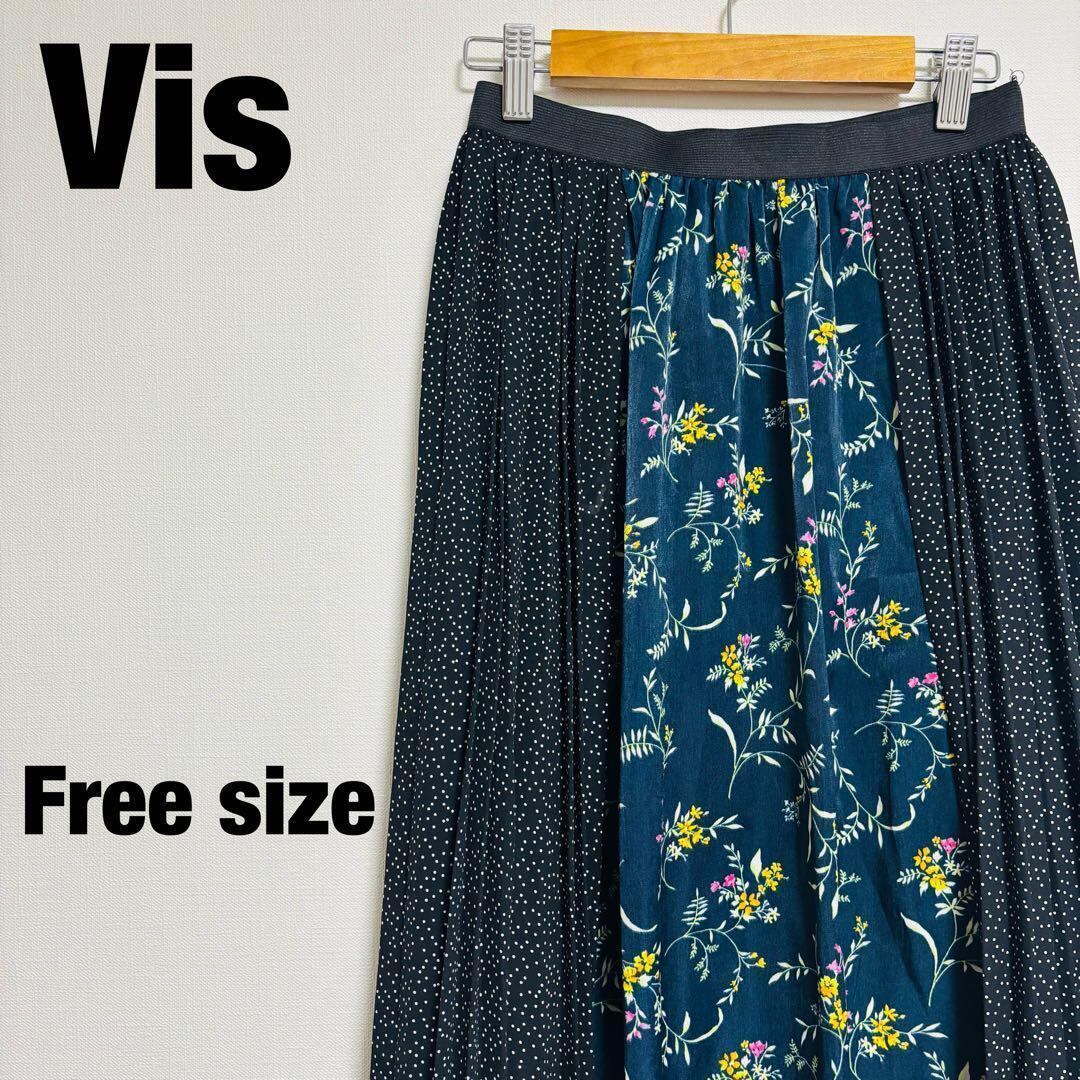 ビス Vis ロングスカート 花柄 プリーツ ウエストゴム フリーサイズ 上品