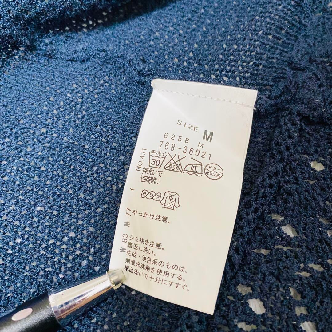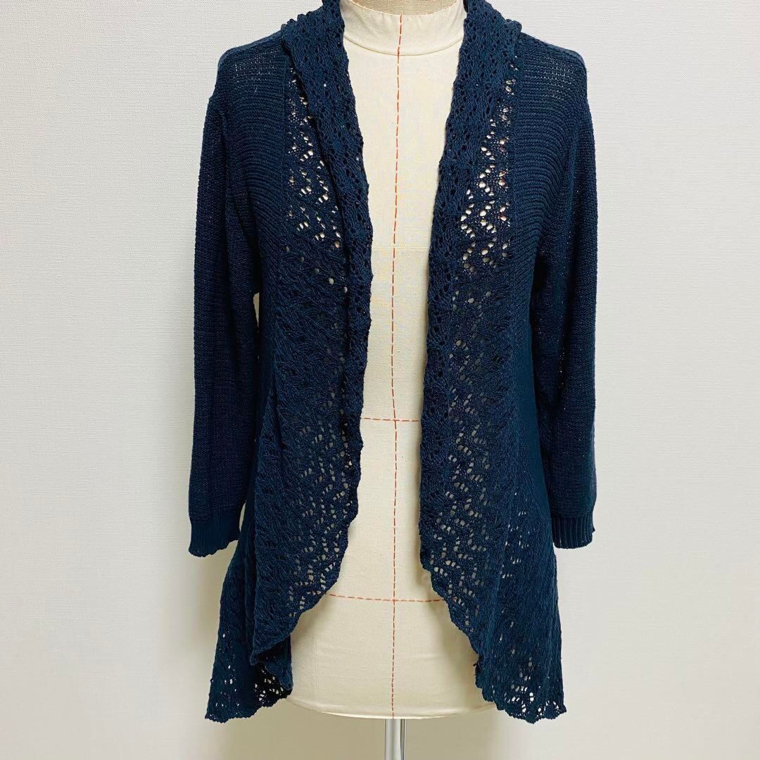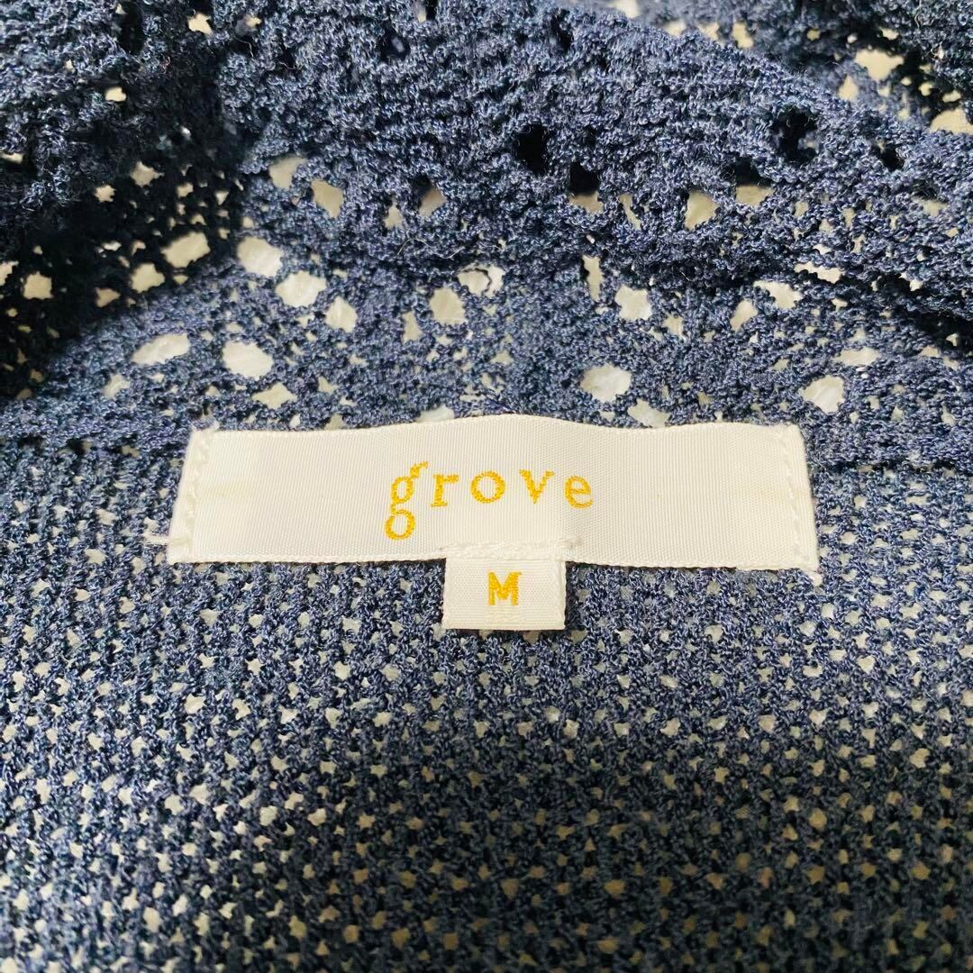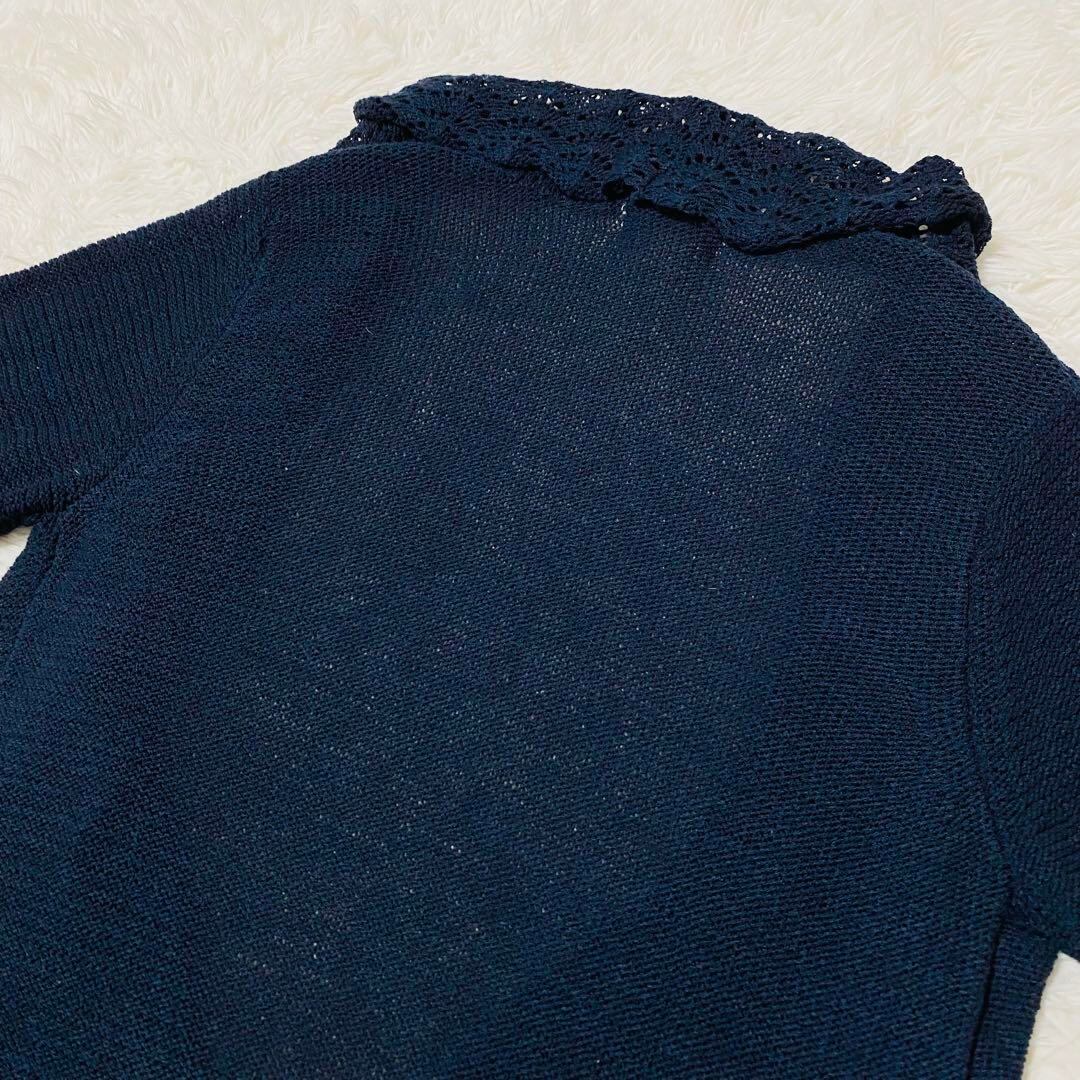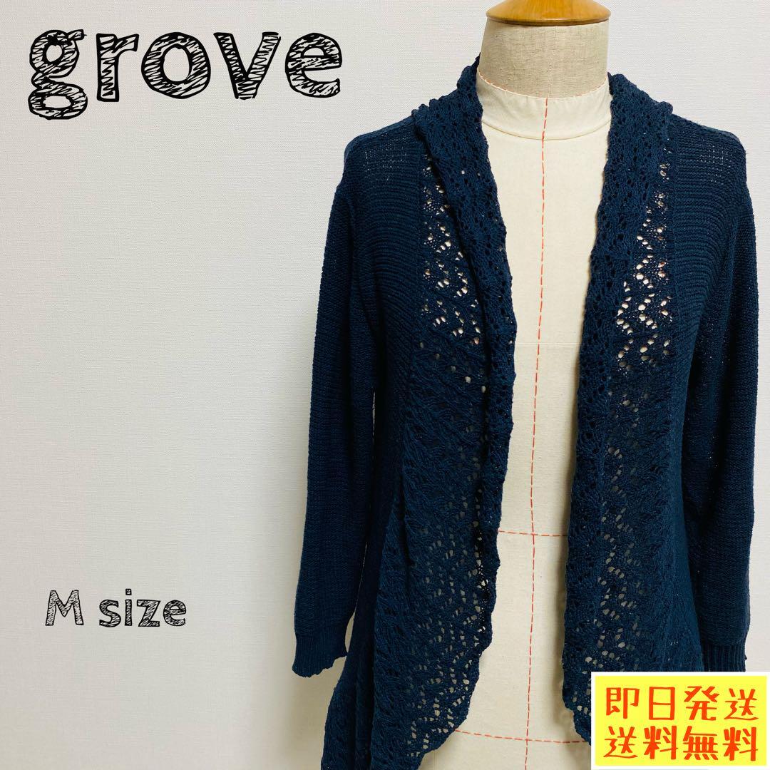 グローブ grove カーディガン レース編み ネイビー Mサイズ 1406