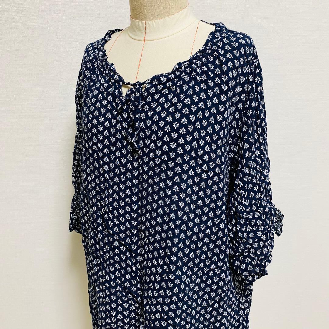 ビーアビーデイズ シャツ 花柄 3L フリル ロング丈 五分袖 1414