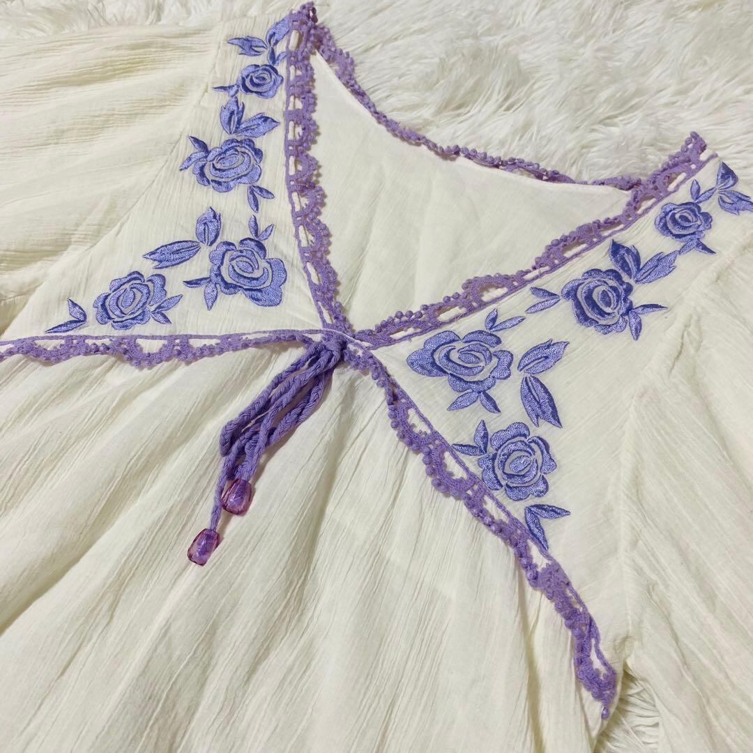 ワンウェイ one way カットソー フリーサイズ 花柄刺繍 春夏 1440