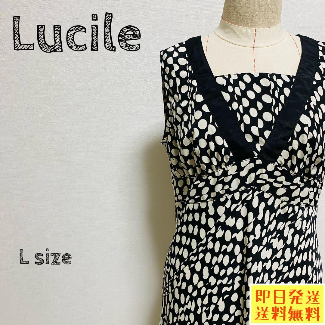 リュシル Lucile ワンピース Lサイズ ドット柄 ノースリーブ 1446