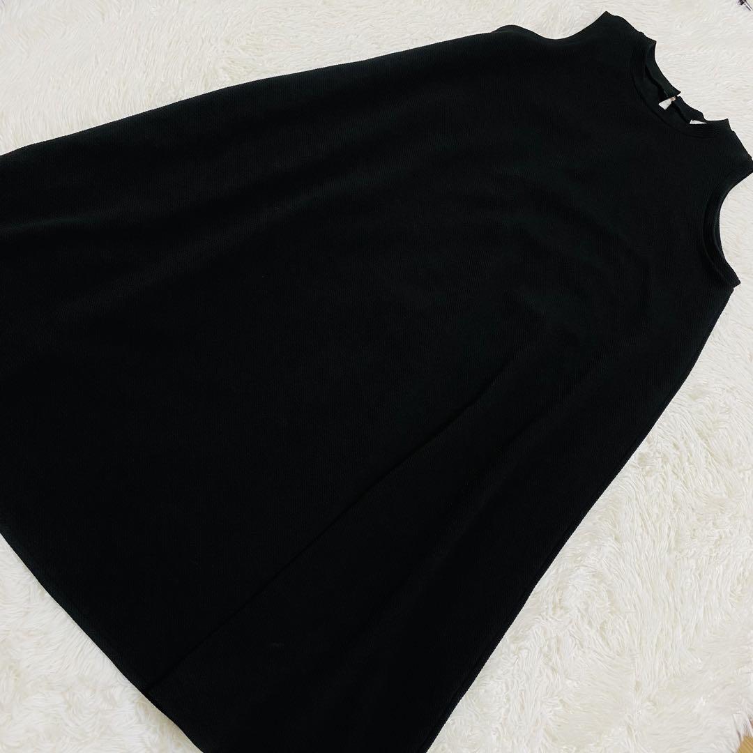 アムリール ロングワンピース ブラック テクスチャー ノースリーブ M 1452