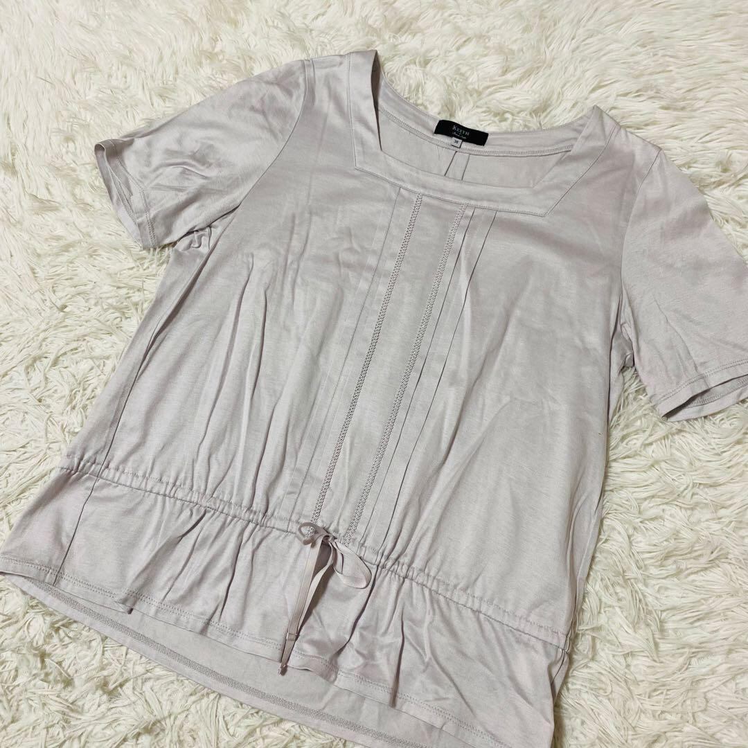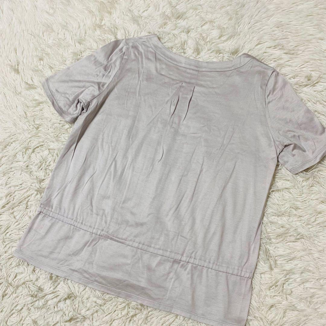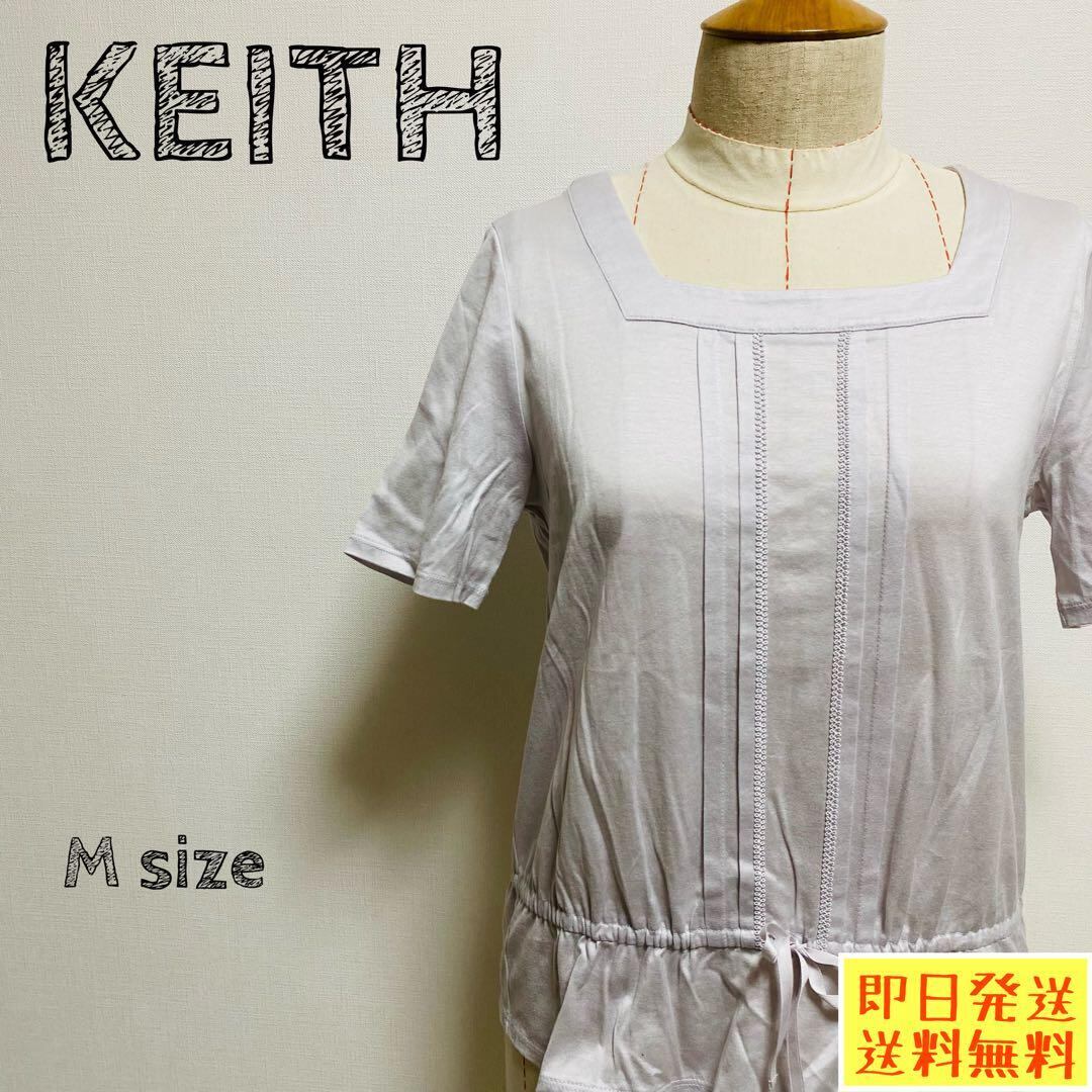 キース KEITH カットソー Mサイズ Uネック ライトグレー ウエストリボン