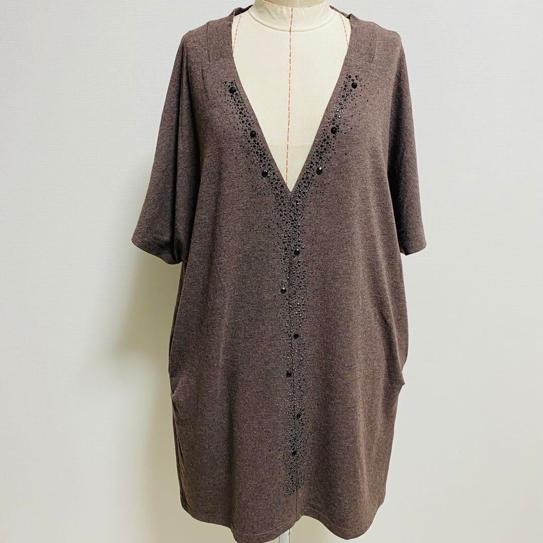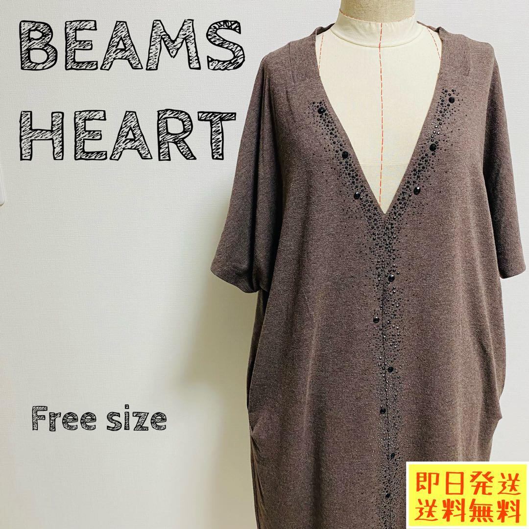 ビームスハート カーディガン フリーサイズ ブラウン ロング ビジュー 1493