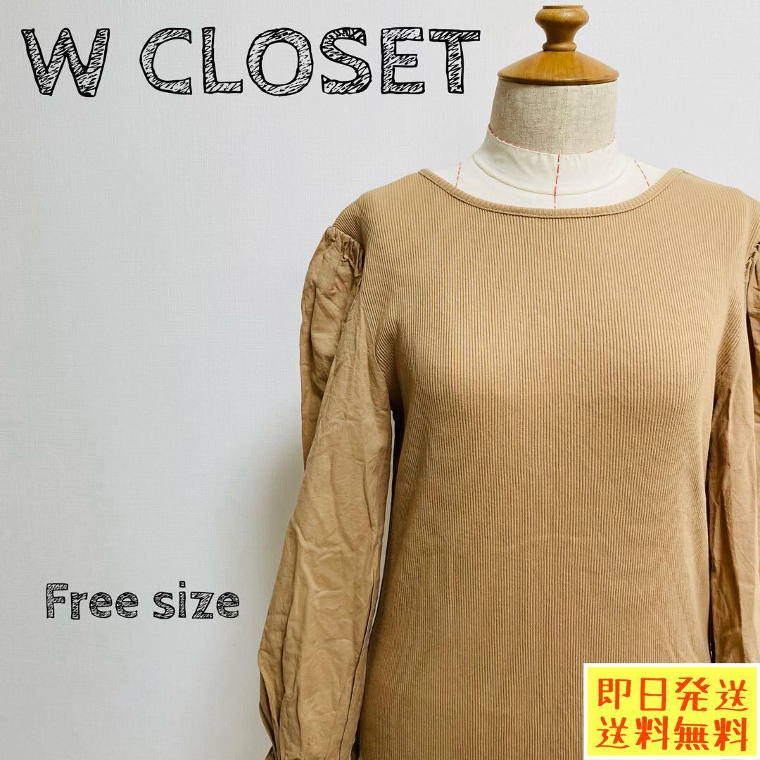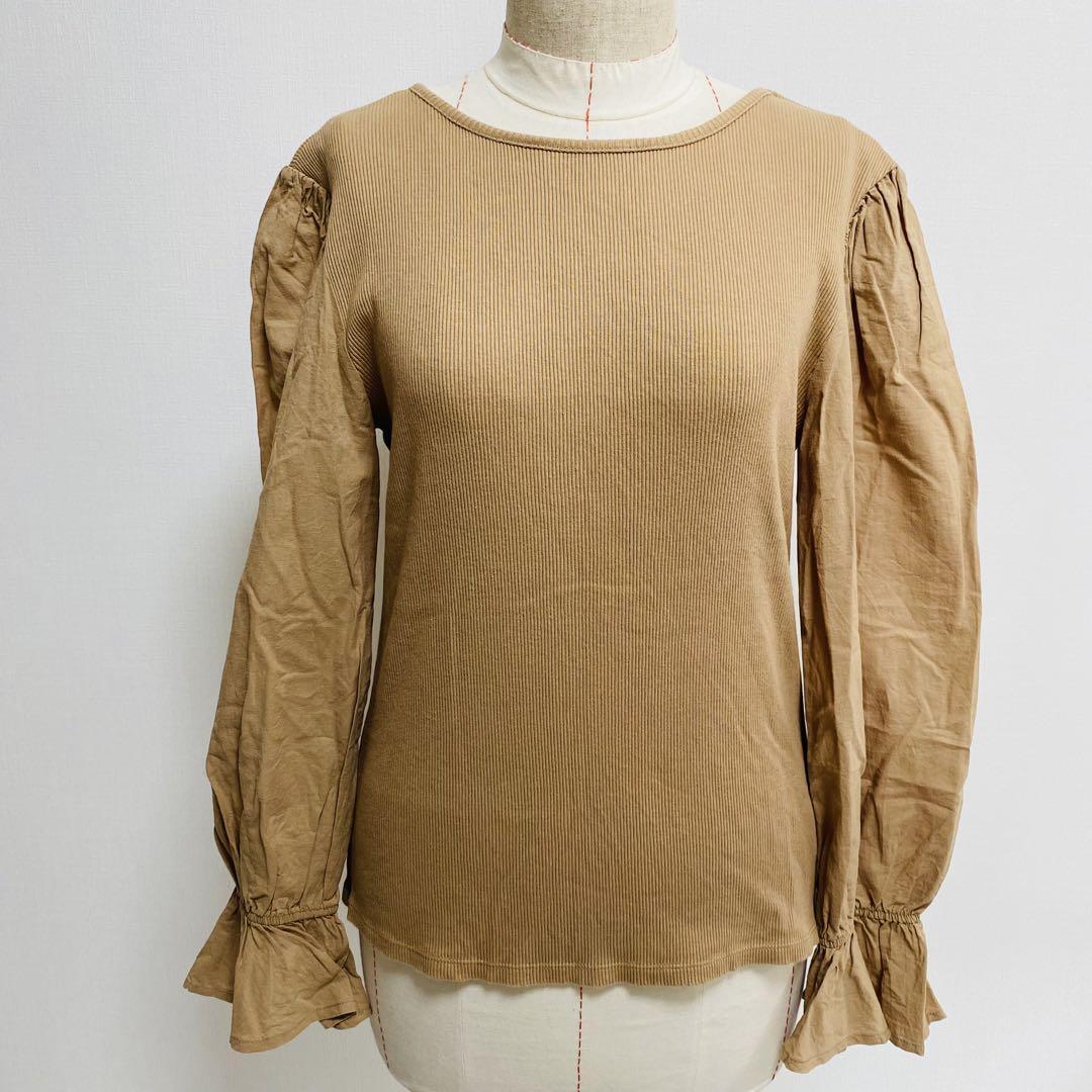 ダブルクローゼット リブニット 長袖 コットン ベージュ パフスリーブ 1501