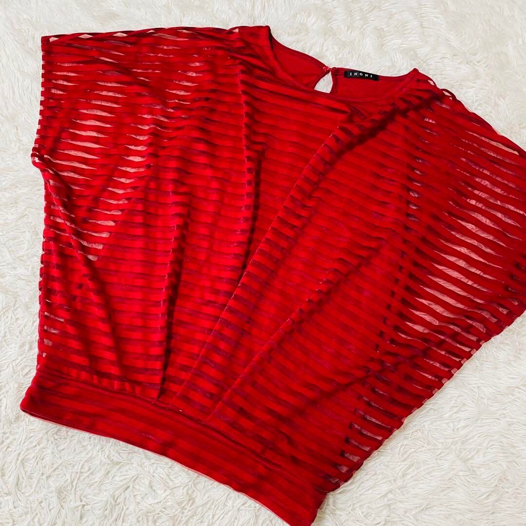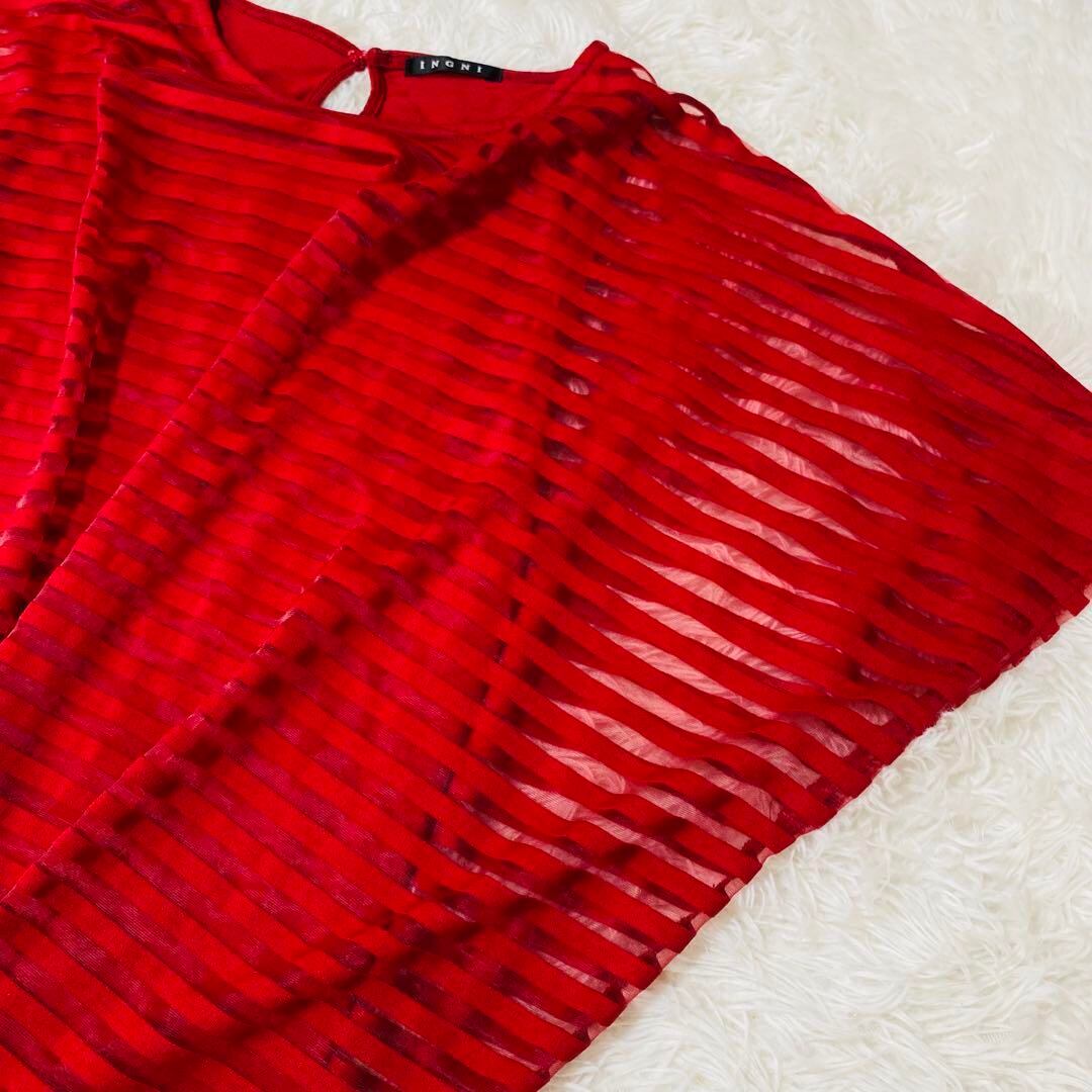 イング INGNI カットソー ノースリーブ 透け感 Mサイズ レッド 1500
