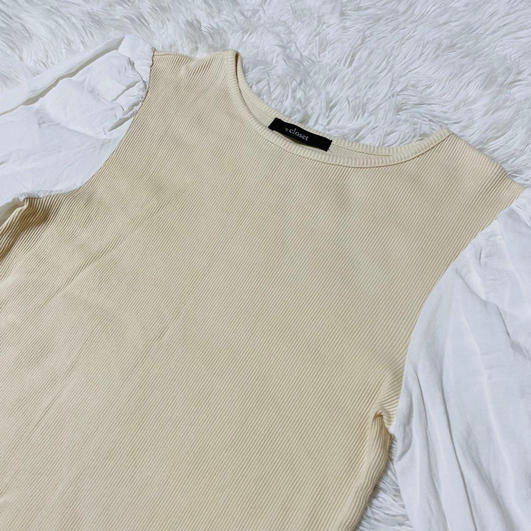 ダブルクローゼット リブニット フリル 長袖 ベージュ フリーサイズ 1513